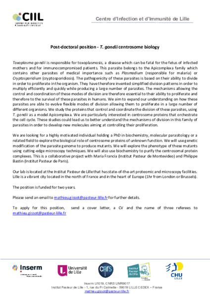 To apply for this position, send a cover letter, a CV and the name of three referees to mathieu.gissotpasteur-lillefr